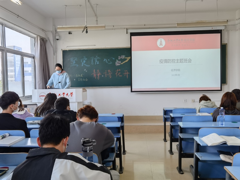 为提高学生对疫情防控的重视度,进一步做好疫情防控工作。2022年3月30-31日,2021级国贸班、金融工程班以及经济班分别在在翠六教201、208、403召开疫情防控主题班会,班会由辅导员韩然然老师主持。此次班会以“坚定信心,静待花开”为主题,结合当前疫情防控形势,引导同学们做好个人防护、科学防疫。