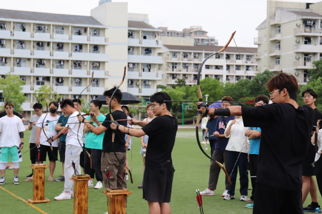 本次趣味运动会共设置了射箭、拔河、四人五足和旱地龙舟等9个项目。活动中,学生齐心协力,配合默契,取得一个又一个优异的成绩,周围学生积极为班级加油,掌声和欢呼声不断。最终经过各项目的角逐,经济学21-1班、国际经济与贸易20-1班、金融工程21-2班分获集体前三名。