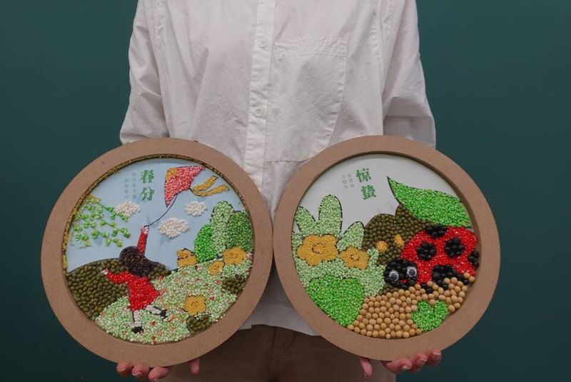 本次活动围绕“二十四节气”主题开展设计,学生们发挥自己丰富的想象力和创造力,制作属于自己的豆子画。活动中使用准备好的黑豆、红豆、粘米、黑米、小米等五谷杂粮粘成主题突出、寓意深刻、美观大方的豆画作品。相关作品将赠送给关爱自闭症儿童志愿基地的小朋友们。
